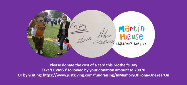 We are still currently collecting for Martin House, to replace the lights in the corridor of the children’s bedrooms in memory of Mum. If you’d like to donate to this fund, you can do so here.